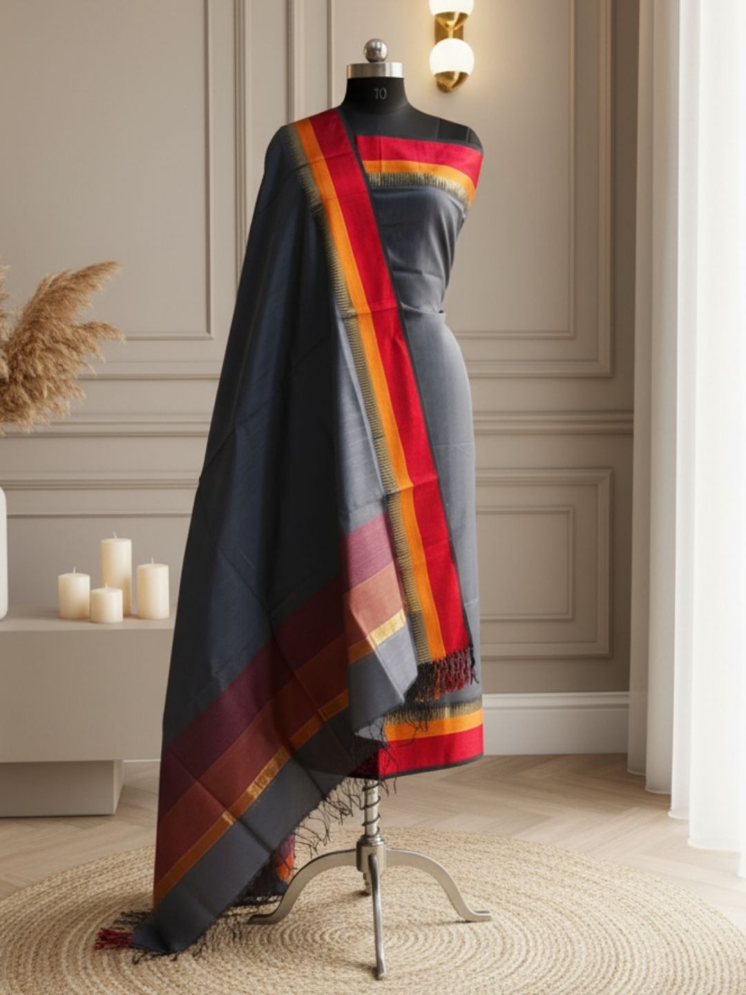Zari Sutra Maheshwari Silk Charcoal Gray Suit