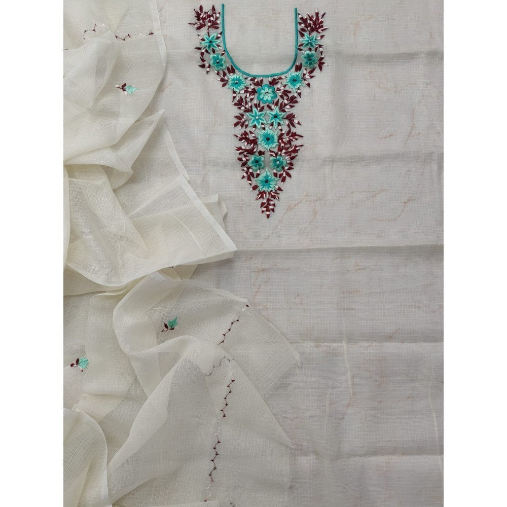 Embroidered Gleaming Kota Doria White Suit (Top+Dupatta)
