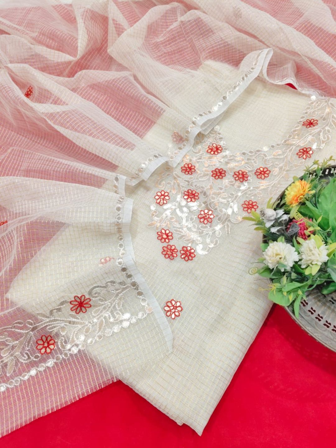 Bind & Bloom Kota Cotton Suit Material (T+D) Off White