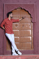Handloom Kota Silk Beige & Rust Red Sare