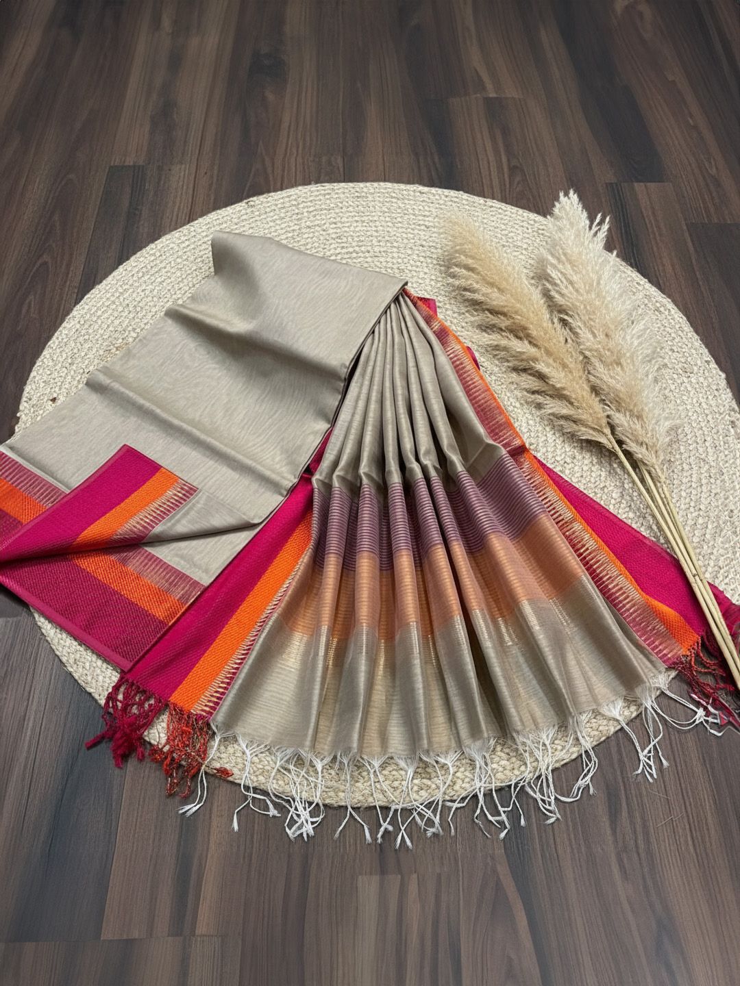 **Maheshwari Silk** is a traditional handwoven fabric from Maheshwar, Madhya Pradesh, known for its luxurious texture and lightweight feel. It blends silk and cotton, offering both shine and comfort. Characterized by intricate zari borders, reversible designs, and geometric or floral motifs, Maheshwari Silk sarees exude timeless grace and royal elegance.