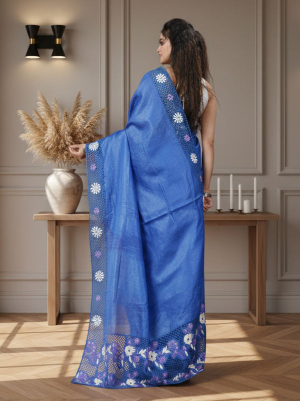 Indulge in opulence with our Silkmark Tussar Embroidery & Cutwork Saree. Adorned with intricate embroidery work and delicate cutwork detailing on Tussar silk fabric, each saree offers a blend of traditional craftsmanship and contemporary style, perfect for special events and social gatherings.