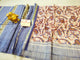 Silkmark Tussar Blushing Blockprint Blue Saree