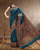 Ajrakh Printed Arapawa Blue Chanderi Silk Saree
