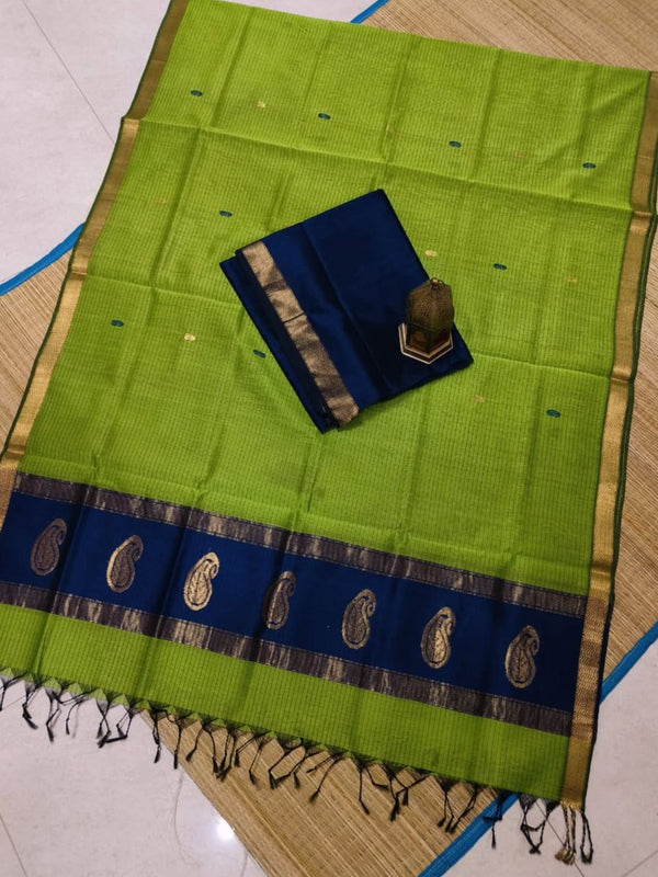 Exquisite Maheshwari cotton silk top dupatta set featuring delicate kairi buta motifs and shimmering zari border. A timeless piece blending tradition with sophistication, perfect for festive occasions, cultural celebrations, and elegant everyday ethnic wear.