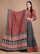 Pure Linen Colorful Pink Dupatta & Black Ikkat Kurti Set
