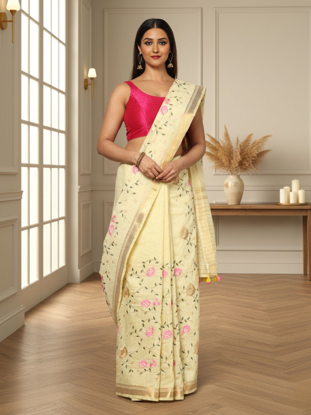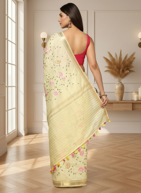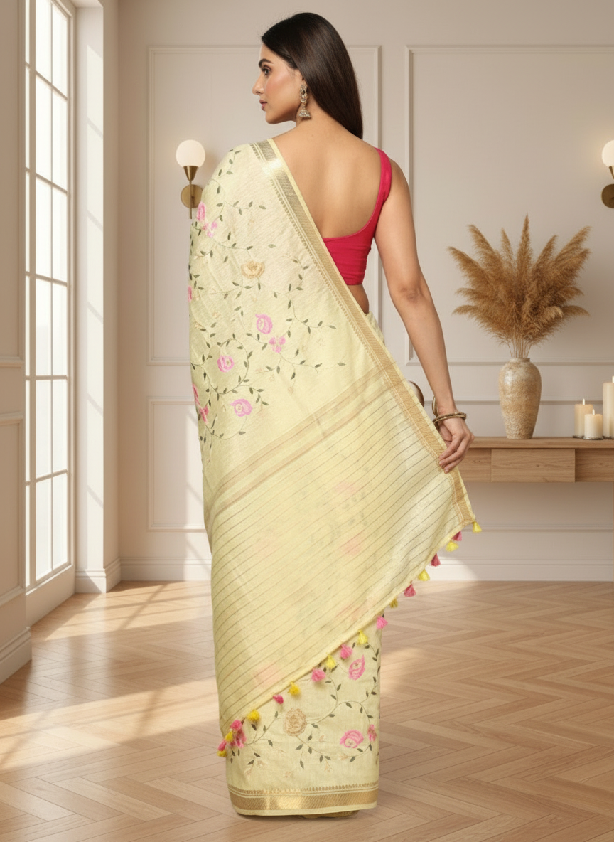Best Selling Products, Diwali Sale, Gudi Padwa Sale, Haldi Collection, Linen And Cotton Sarees, New Arrivals, Newest Products, Puthandu Sale, Reception, Sarees, Silk Linen Embroidered Handloom Saree, Silk Linen Sarees, Silk Sarees Ad, Sutra, Ugadi Sale, VaraMahalakshmi Sale, Wedding Collections, Women's Day Sale