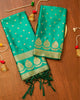 Elevate your ethnic charm with our Banarasi Lichi Silk Suit featuring exquisite brocade weaving. Perfect for festive occasions, this suit showcases luxurious texture, intricate craftsmanship, and timeless traditional elegance.