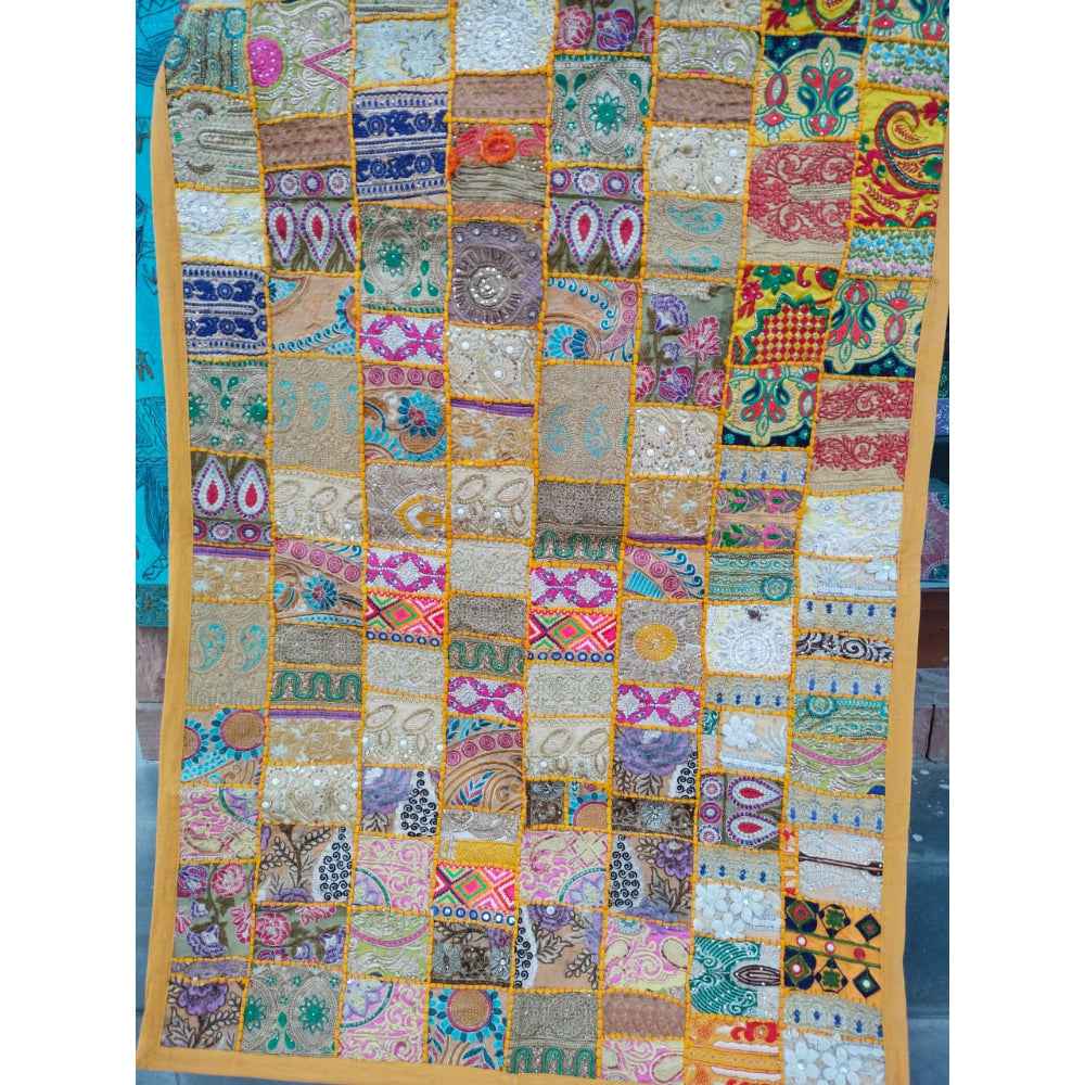Kambadiya work is a traditional Indian art form that involves patchwork and embroidery, often using colorful fabric scraps. These tapestries are handcrafted and known for their intricate designs and vibrant colors.