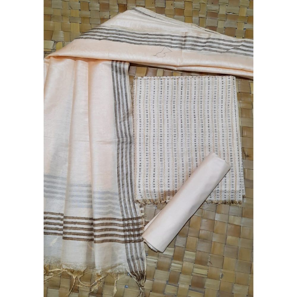 A Katan Silk Suit Piece is handcrafted with intricate weaving techniques using pure silk threads. Each piece showcases meticulous craftsmanship and exquisite designs.