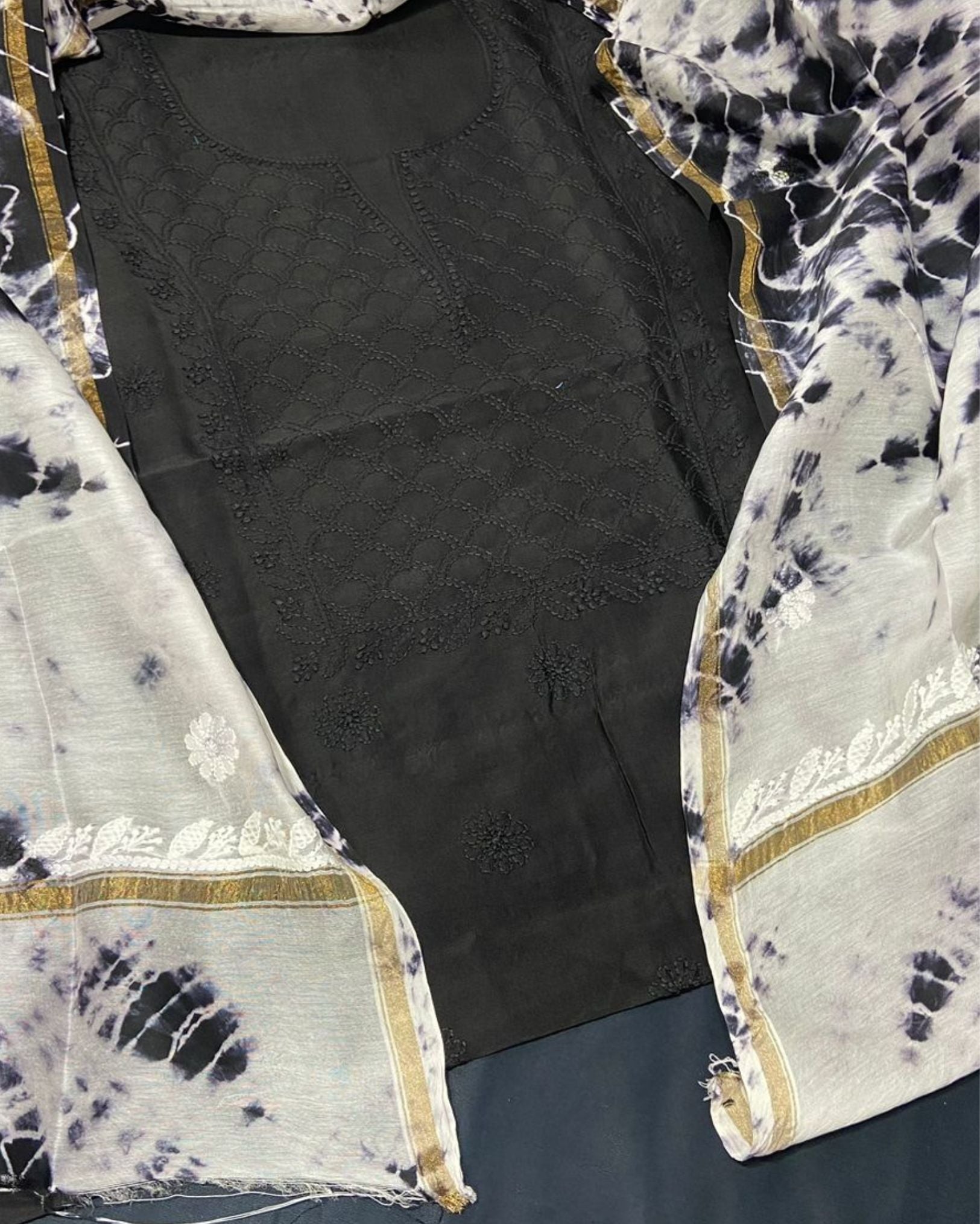 Chikankari Pure Chanderi Silk Shining Black Kurta & Dupatta