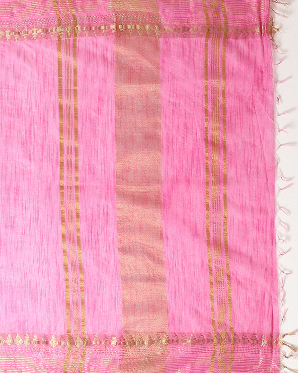 Deep Blush Pink Pure Silk Kota Doria Handdyed Saree