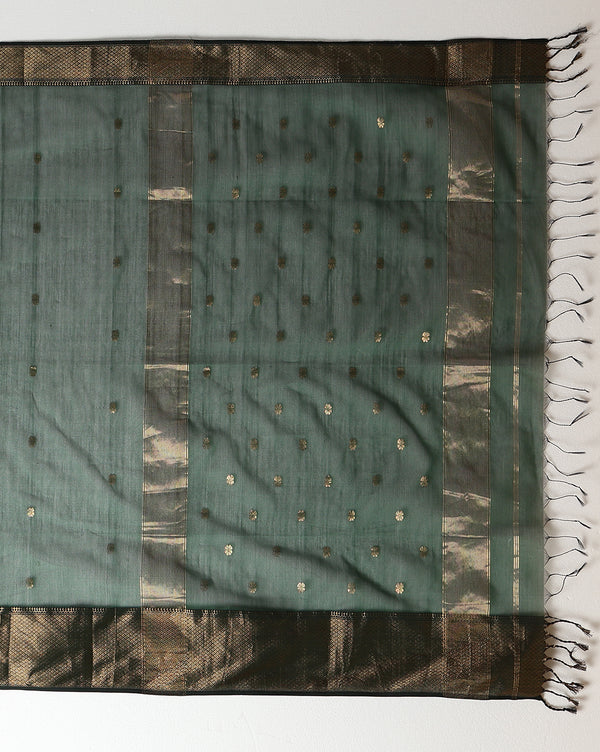 Zari Sutra Maheshwari Silk Teal Green Su