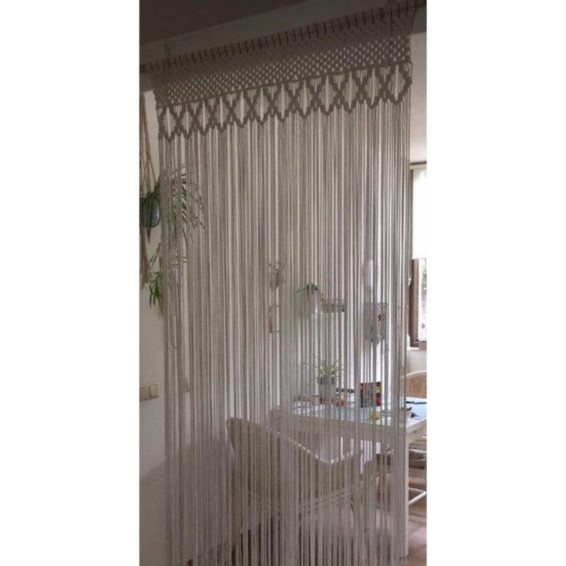 A Macrame Curtain is a decorative textile panel crafted using macrame knotting techniques. It features intricate patterns and designs created with knotted cords, adding bohemian style to windows, doorways, or wall spaces.