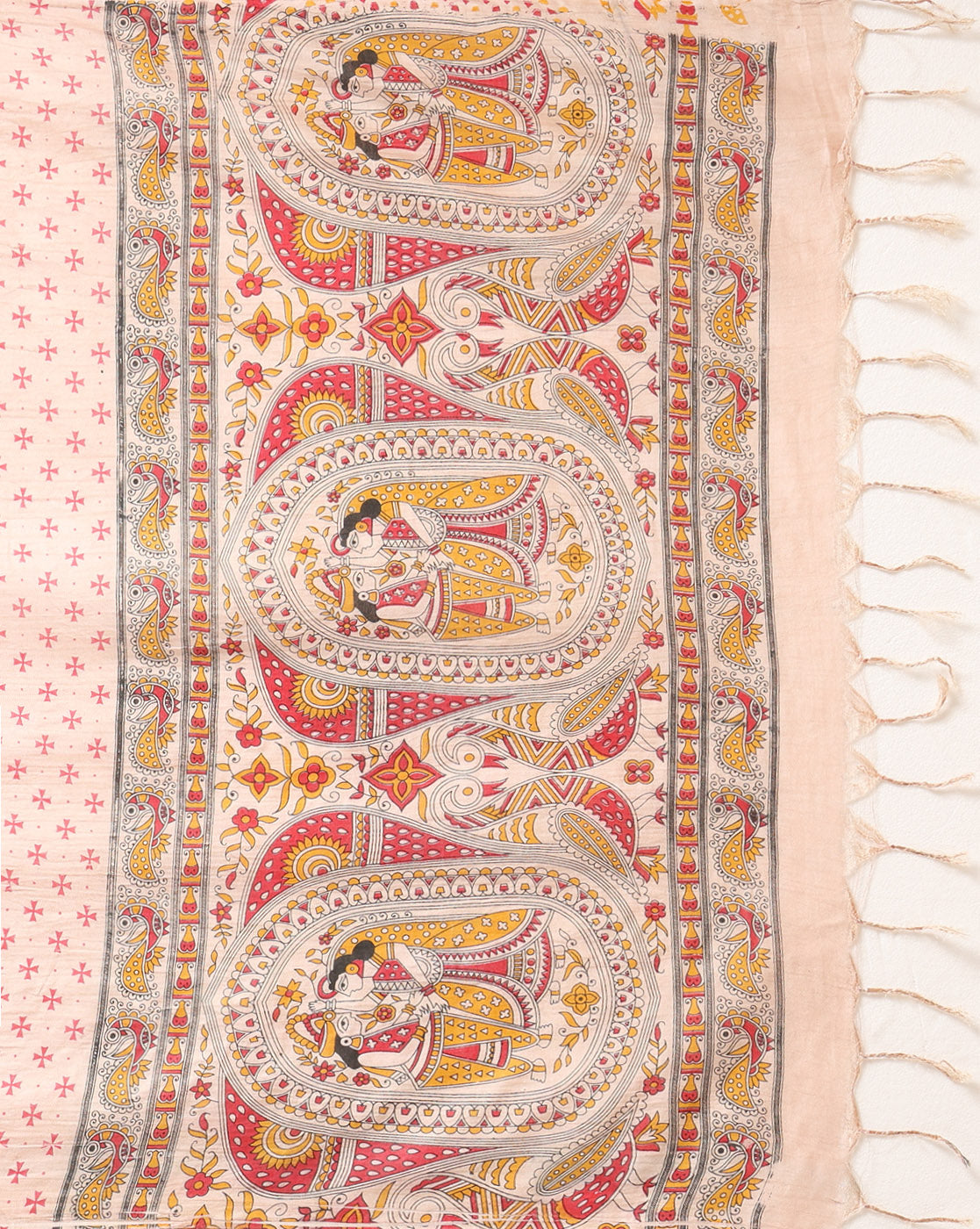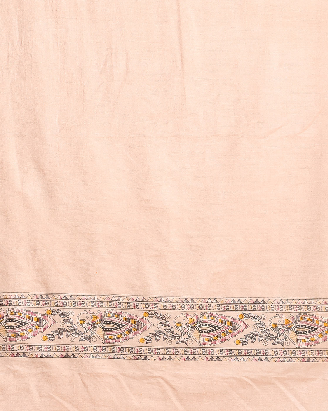 Experience the beauty of art with our Handcrafted Katan Silk Madhubani Suit. Adorned with intricate Madhubani motifs on luxurious Katan silk fabric, each suit showcases traditional craftsmanship and cultural heritage.