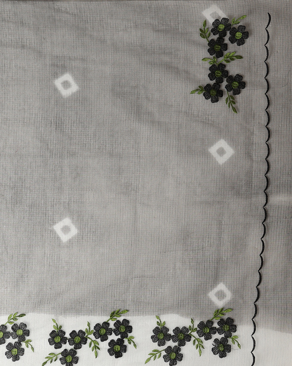Celebrate tradition with our Handcrafted Embroidery Bandhej Kota Doria Saree. Meticulously embroidered with delicate bandhej motifs on lightweight Kota Doria fabric, each saree exudes grace and sophistication, perfect for special occasions.