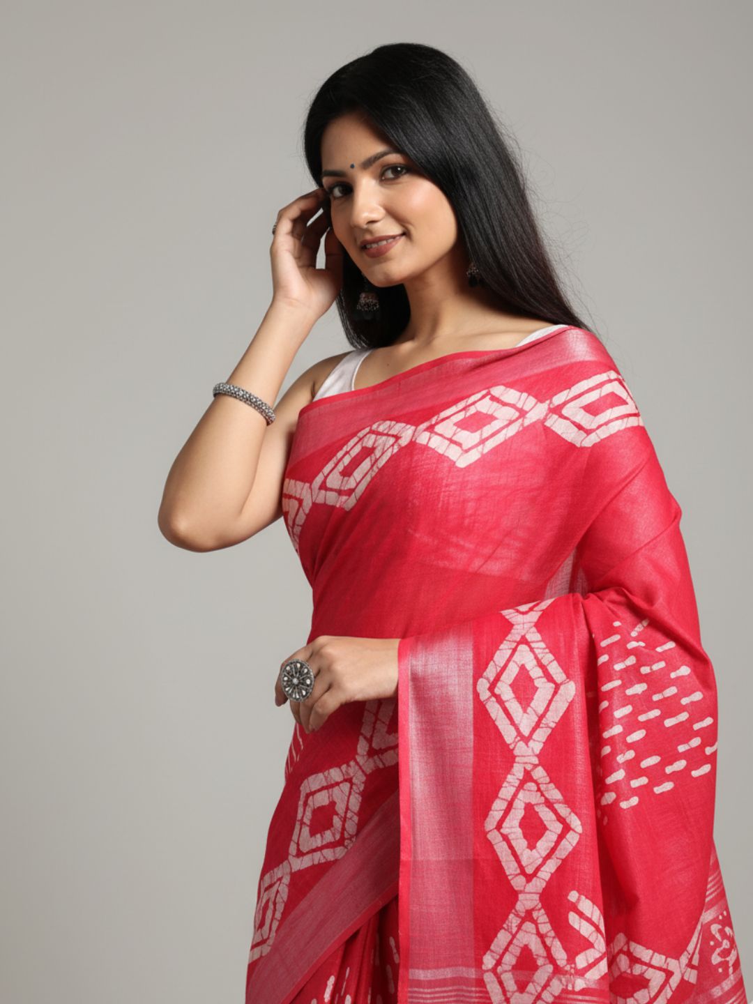 Yes, the Slub Linen Saree Batik Print is versatile and can be styled for both casual and festive occasions. Pair it with traditional jewelry and accessories to enhance its elegance for weddings, parties, or cultural events.
