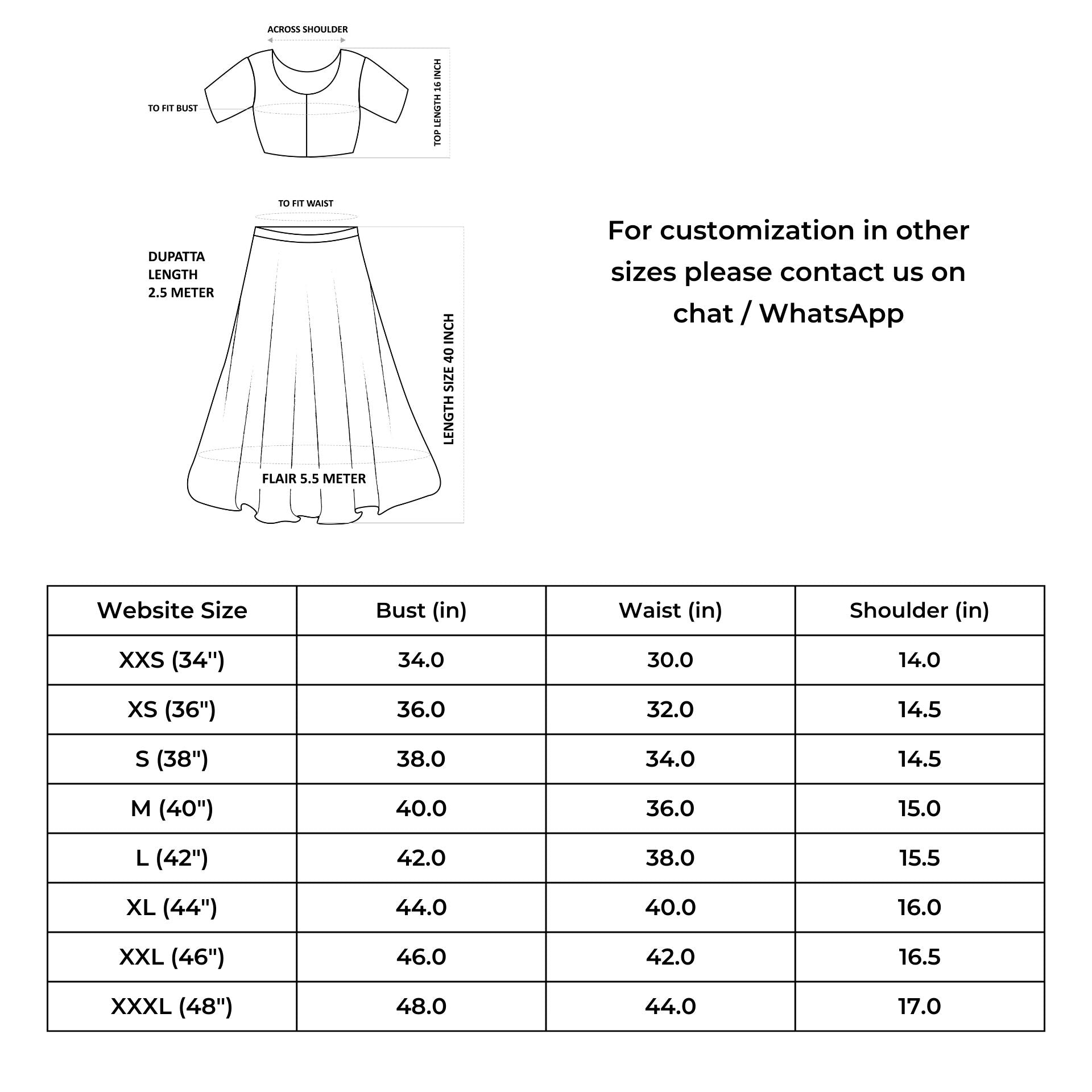 Package Contains: 1 Lehanga, 1 Choli & 1 Dupatta