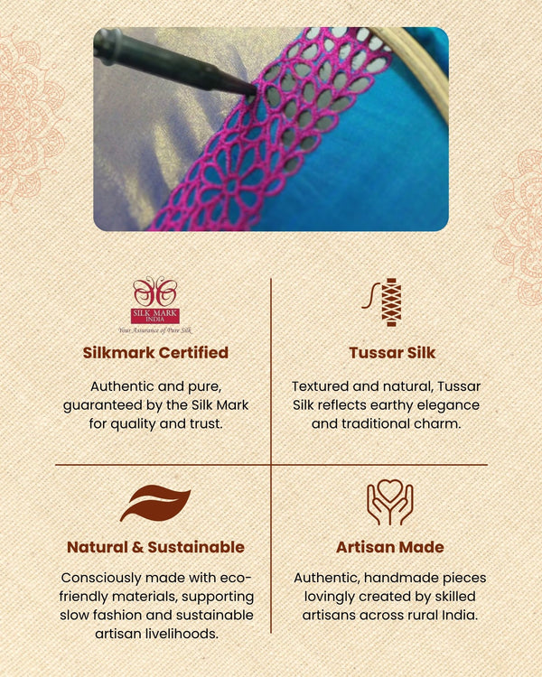 Best Selling Products, Diwali Sale, Independence Day Sale, Most Popular, New Arrivals, Newest Products, Pure Tussar Silk Saree, Puthandu Sale, Sarees, Silk Sarees, Silk Sarees Ad, Silkmark Certified Products, Silkmark Certified Pure Tussar Saree Hand Cutwork, Silkmark Certified Sarees, Silkmark Tussar Silk Sarees, Ugadi Sale, VaraMahalakshmi Sale, Wedding Collections, Women's Day Sale