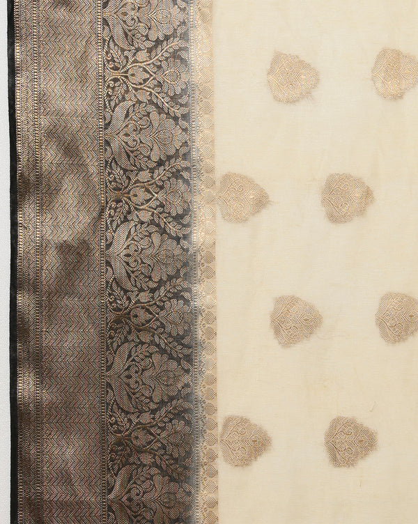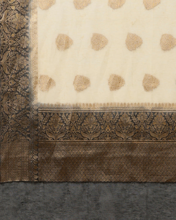 Decorous Banarasi Silk Linen Cream Handloom Saree