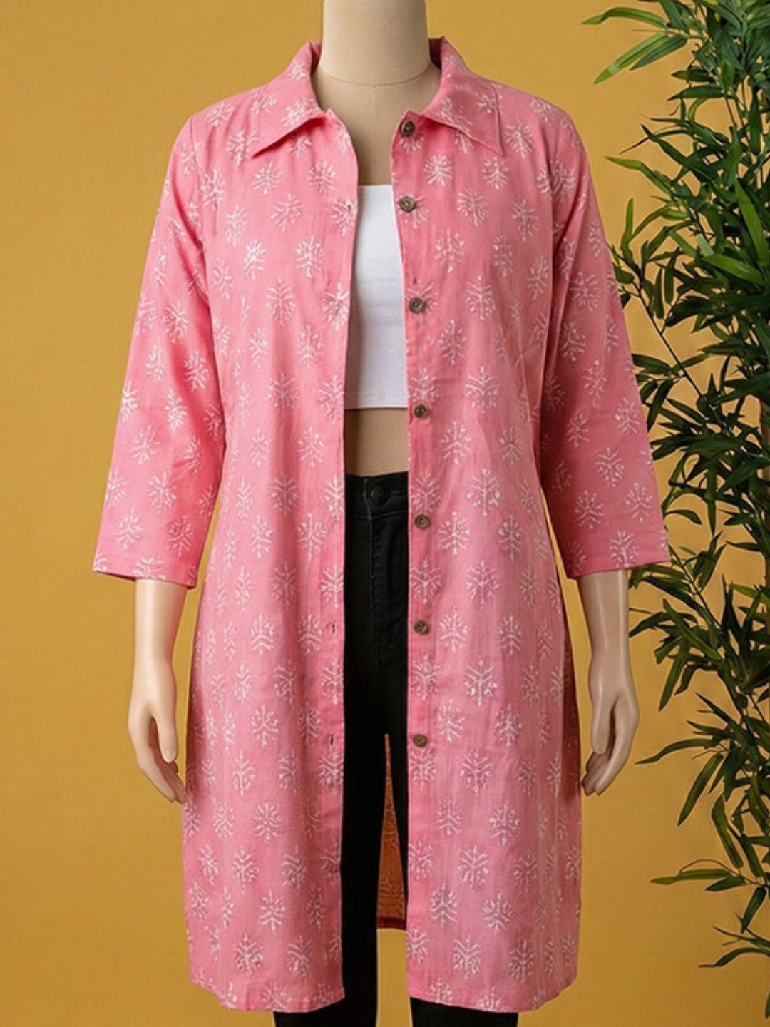 A Pure Cotton Hand Block Print Jacket is a handcrafted outerwear piece made from pure cotton fabric. Artisans decorate the fabric using traditional hand block printing. You can layer it over kurtas, dresses, tops, or sarees.