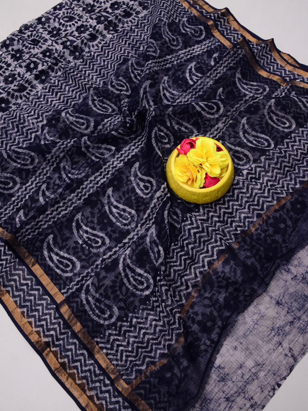 Ajrakh Printed Arapawa Blue Chanderi Sil