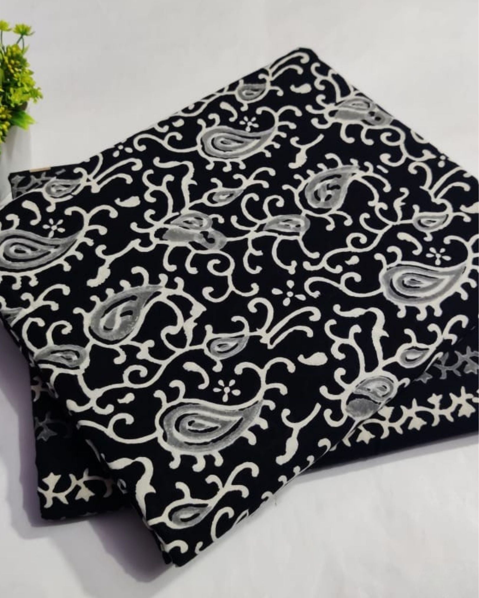 - The Blockprinted unstitched Suit Piece is crafted from high-quality cotton fabric, known for its comfort, breathability, and durability.