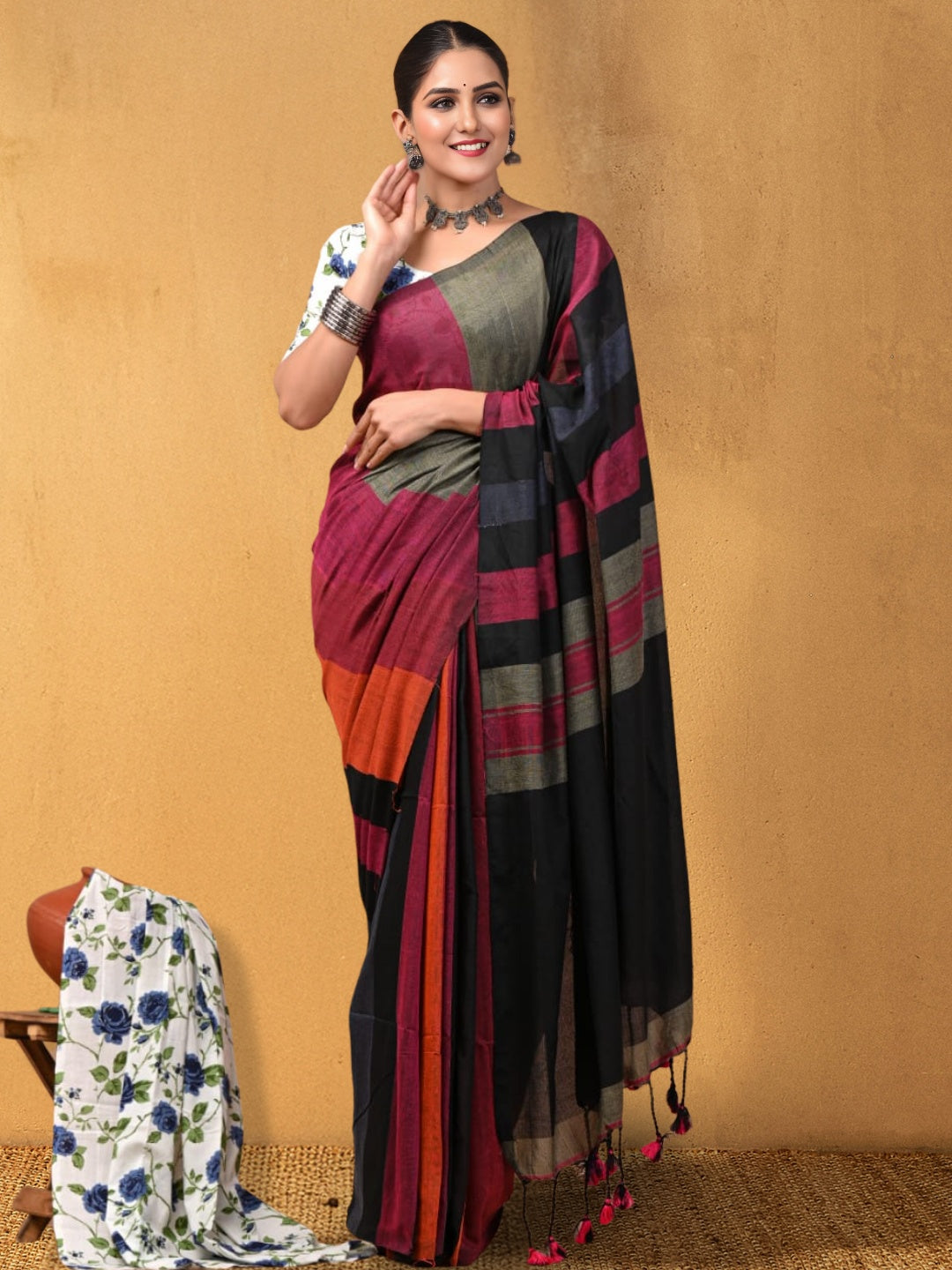 Yes, this saree is perfect for everyday wear, office wear, and casual outings because of its breathable comfort. It can also be styled elegantly for cultural or semiformal occasions.