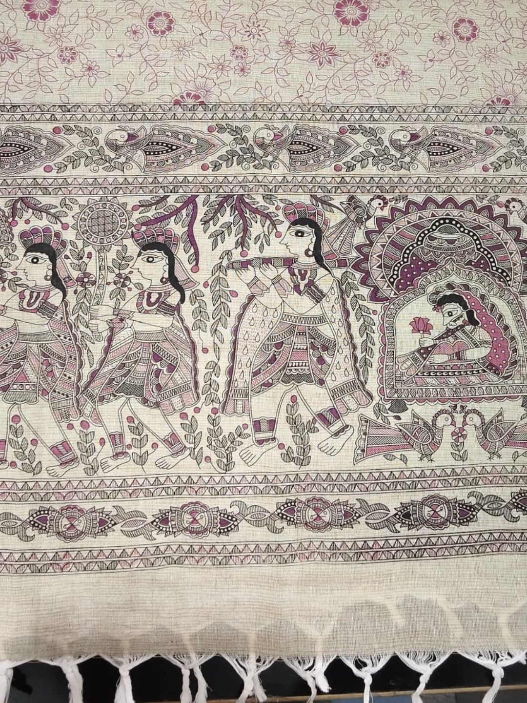 -The fabric is then hand block printed or screen printed with Madhubaniinspired motifs.