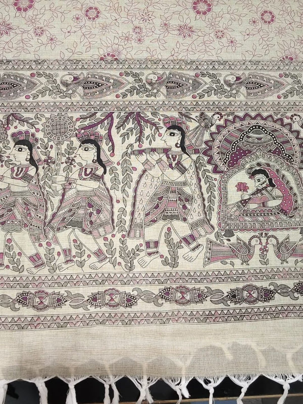 Fine Madhubani Khadi Cotton Suit Beige & Pink