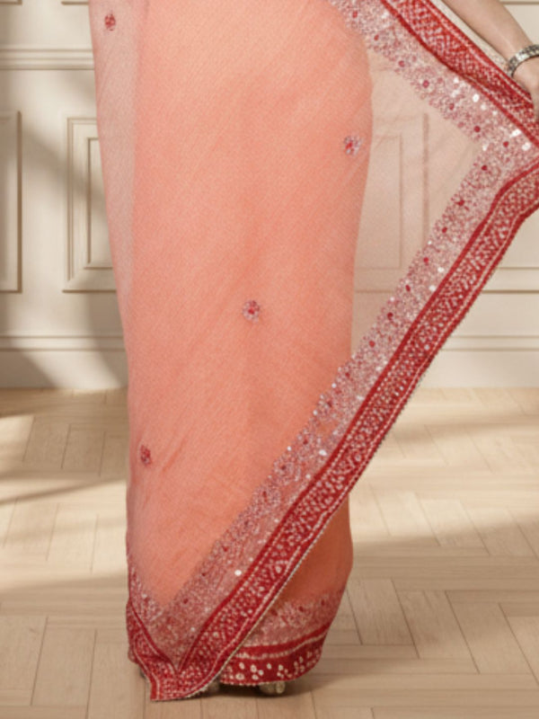 - While the Gota Patti work gives the saree a festive appeal, it can also be styled for semi-formal or casual occasions by pairing it with minimalist jewelry and accessories. This makes it a versatile choice for various events.