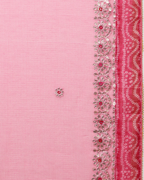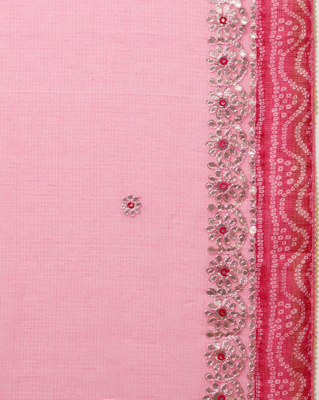 Kota Cotton Gota Patti Saree combines traditional artistry with lightweight elegance. Adorned with intricate Gota Patti work, it is perfect for festive occasions, offering a graceful blend of heritage and contemporary charm.