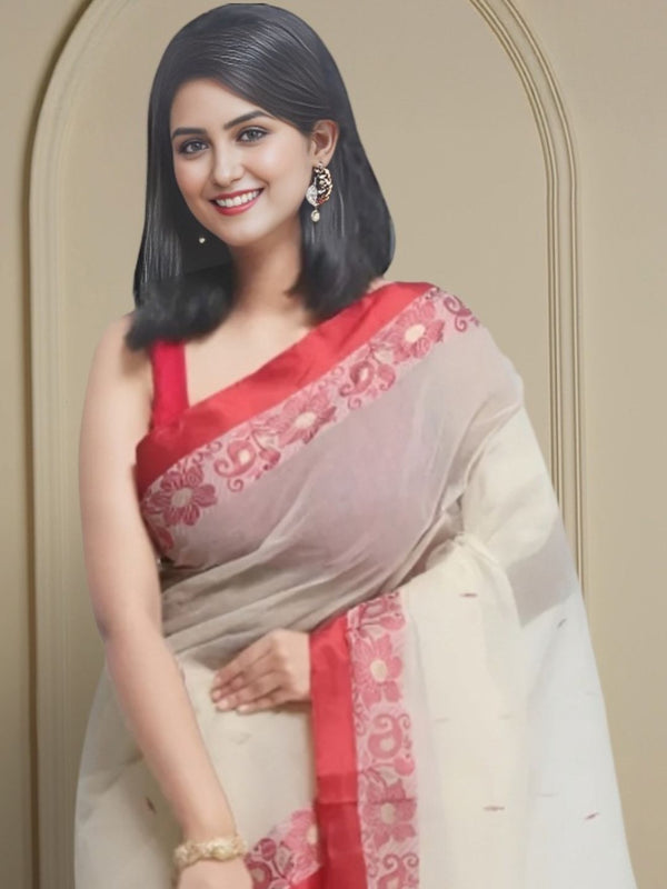 Jamdani Charm Pure Cotton Tant Off-White Saree