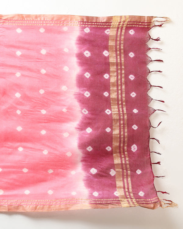 **Bandhani Ombre Hand Dyed** is a traditional tie-dye technique from Rajasthan and Gujarat, combined with the modern ombre effect. Fabric is tied into tiny knots (Bandhani) before dyeing, creating dotted patterns, while the ombre shading blends colors from light to dark. This fusion offers vibrant, artistic, and elegant handcrafted textiles.