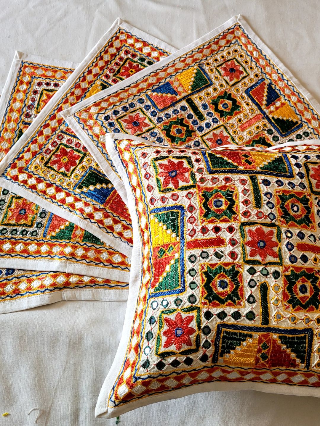 3. Are the Cotton Hand Embroidered Mirror Multicolor Cushion Covers handmade?