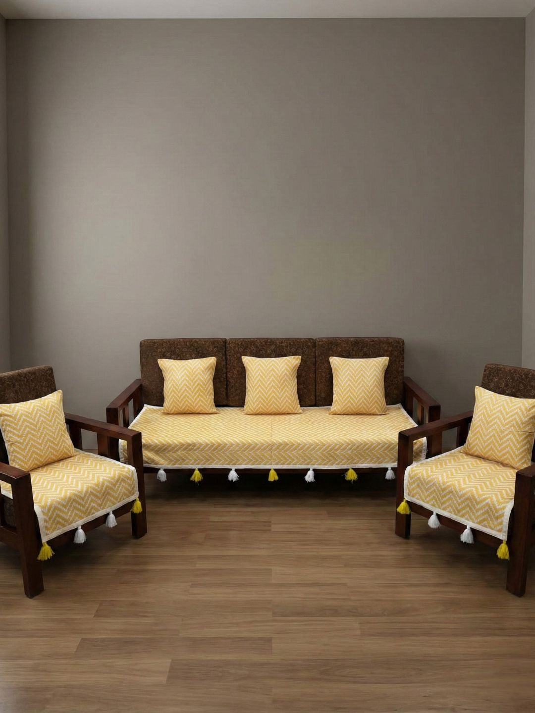 Khamma Ghani Jaquard Sofa Throw & Cushion Cover Yellow
