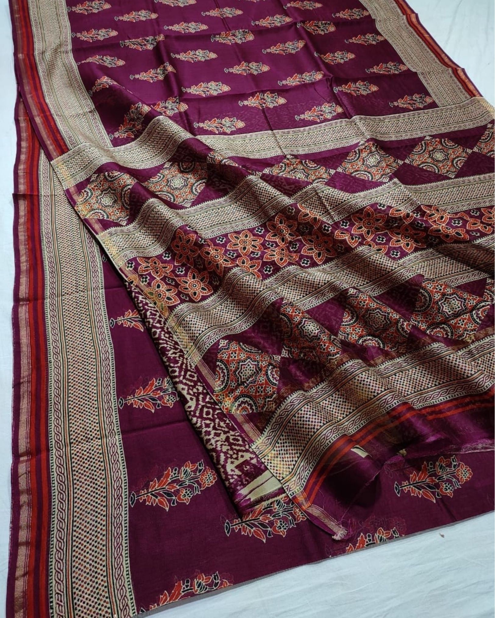 Goonj Chanderi Silk Plum Wine Ajrakh Printed Saree