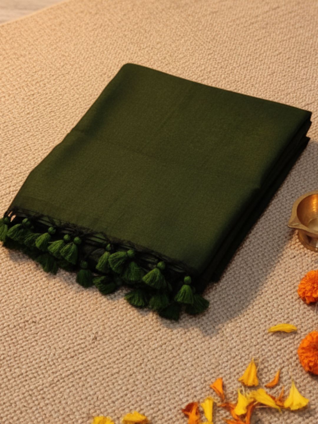 Eri Silk Rama Green Saree Handcrafted