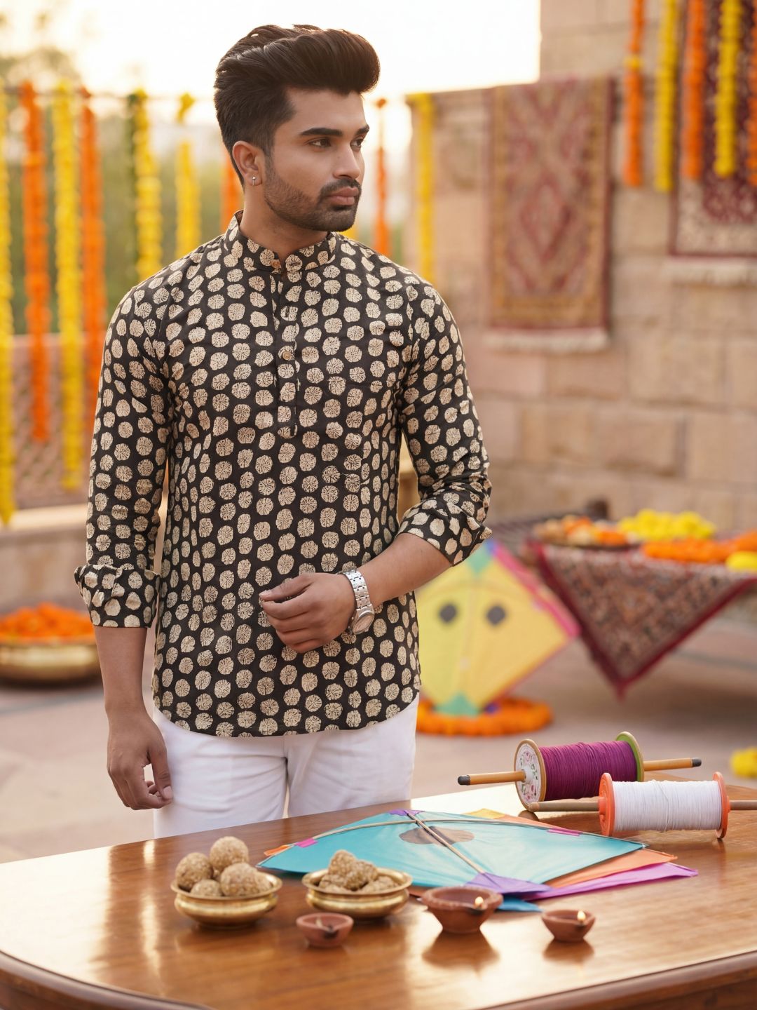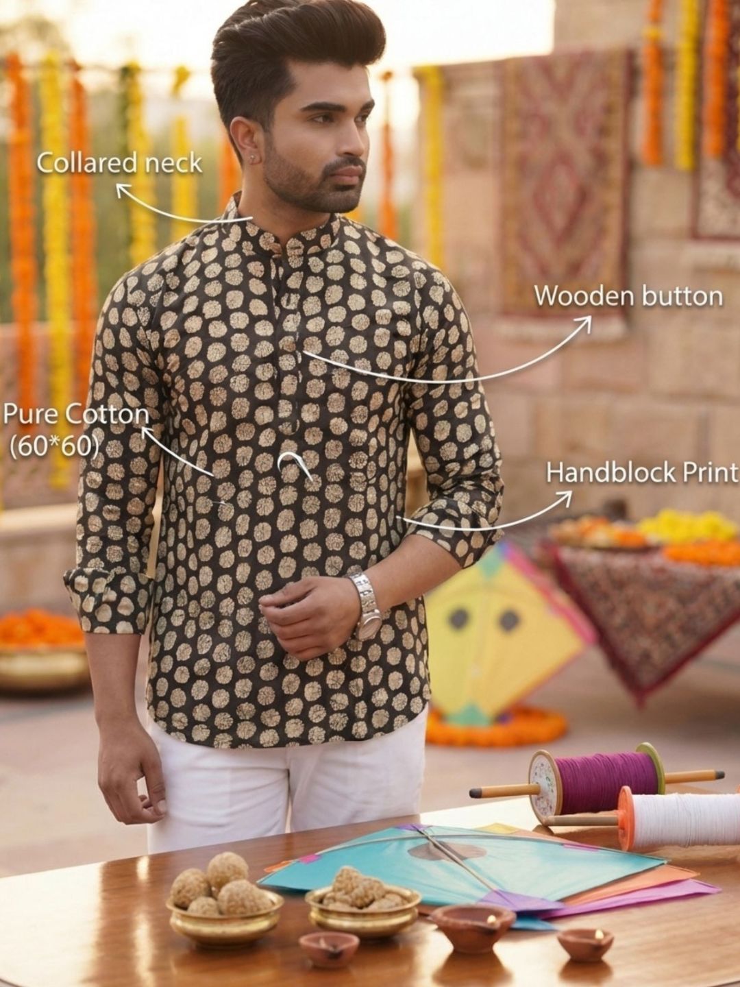 Pure cotton (60×60) short kurta featuring traditional handblock prints. Soft, breathable, and comfortable, ideal for daily wear, casual outings, or relaxed festive moments with ethnic simplicity.