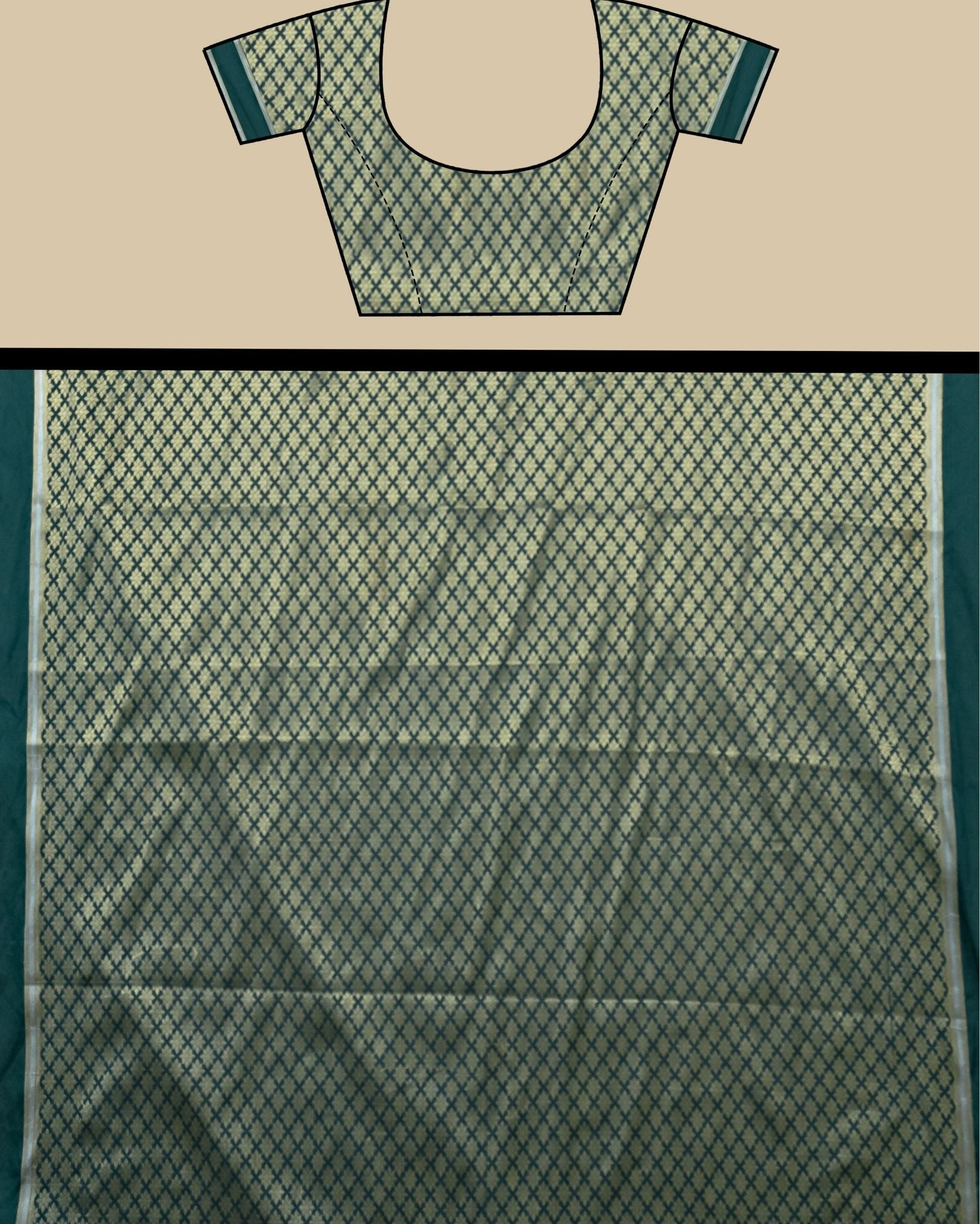 Pine Green Banarasi Brocade Raw Mango Silk Saree
