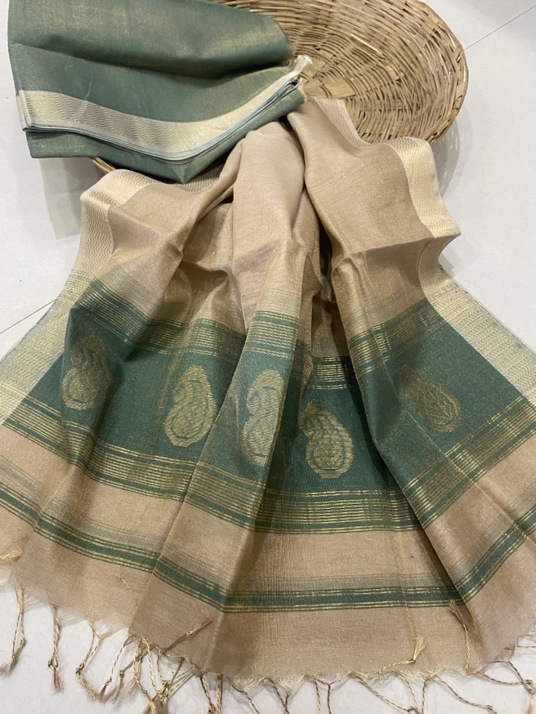 Zari Sutra Maheshwari Silk Teal Green Su