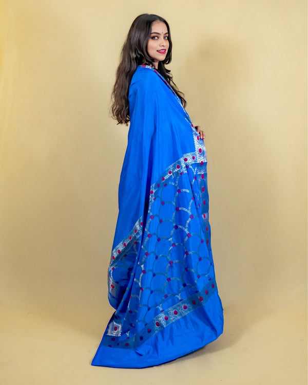 Zari Sutra Maheshwari Silk Royal Blue Su