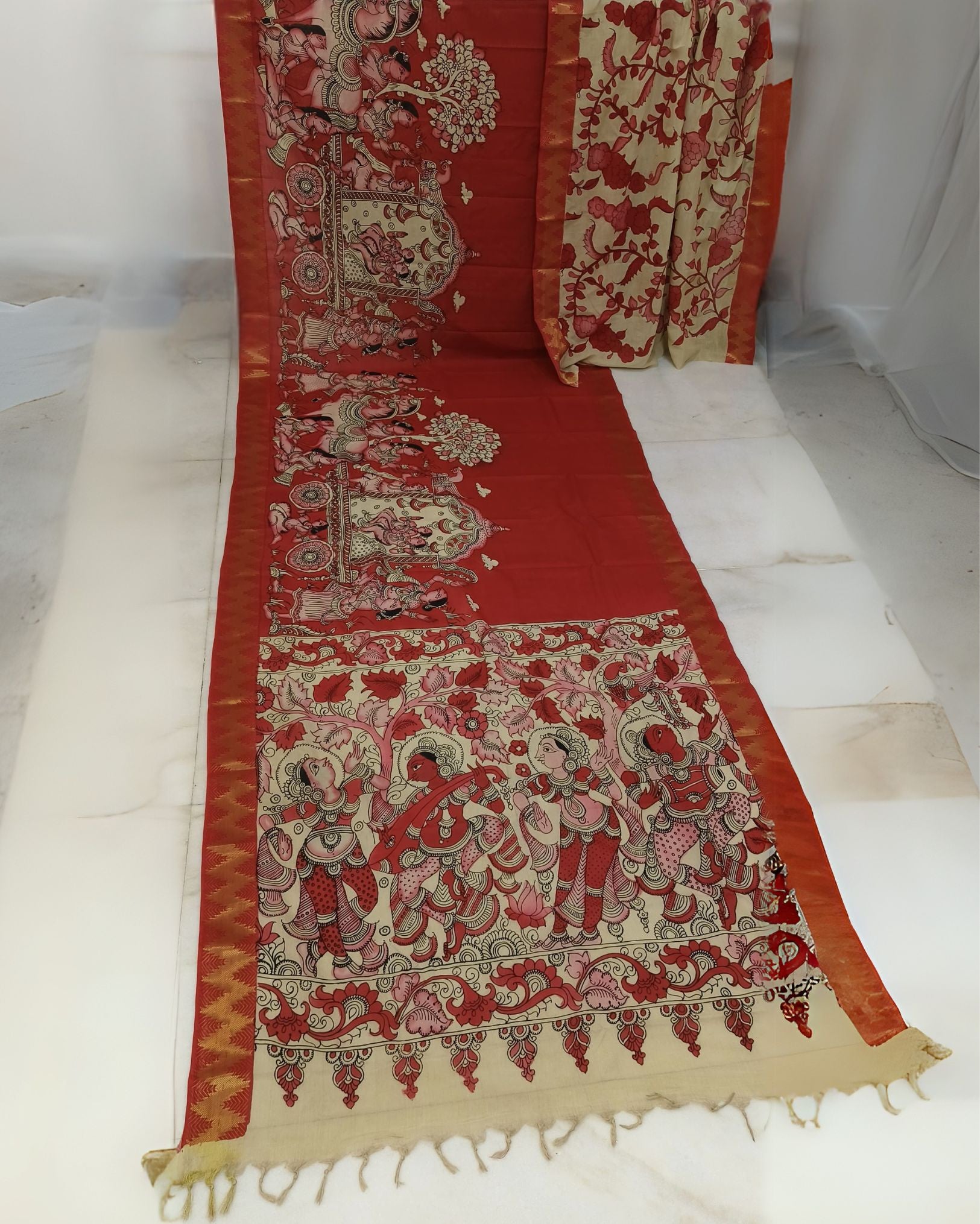 Exquisite Mangalagiri handpainted and hand-drawn sarees, showcasing intricate artistry on premium... Read more