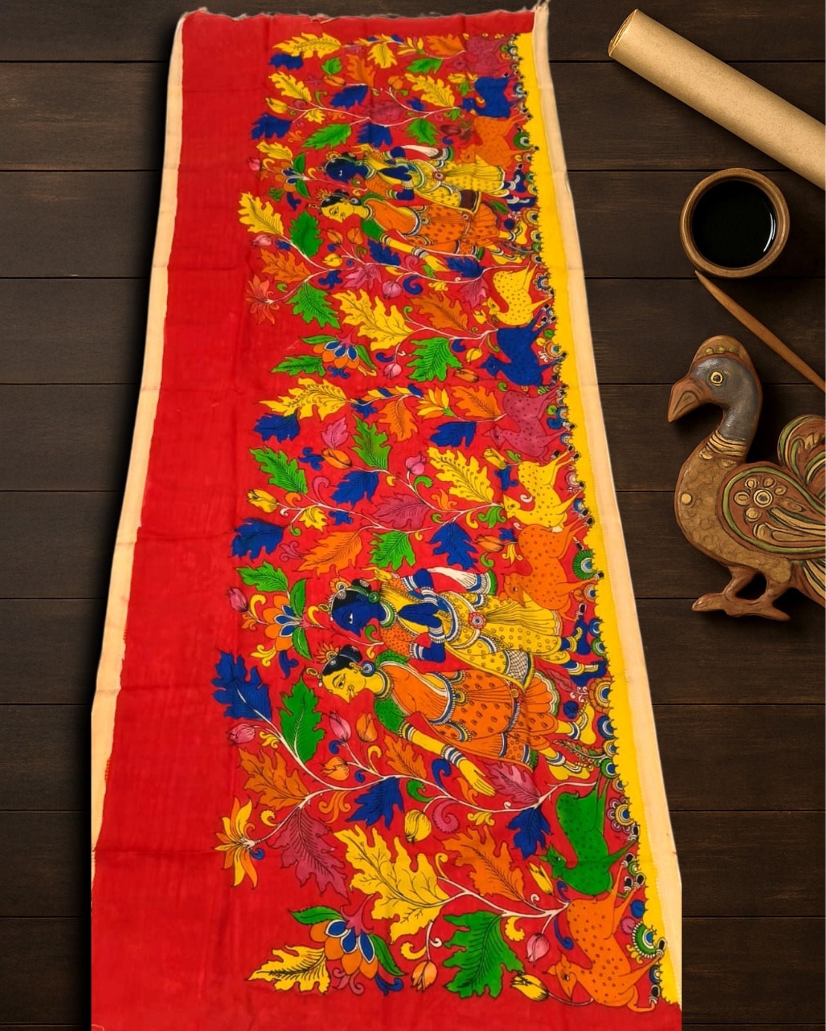 Elevate your style with a Mangalagiri Silk Hand Painted Dupatta. Featuring intricate, artistic designs, it's perfect for adding a traditional yet contemporary touch to your festive and ethnic outfits.