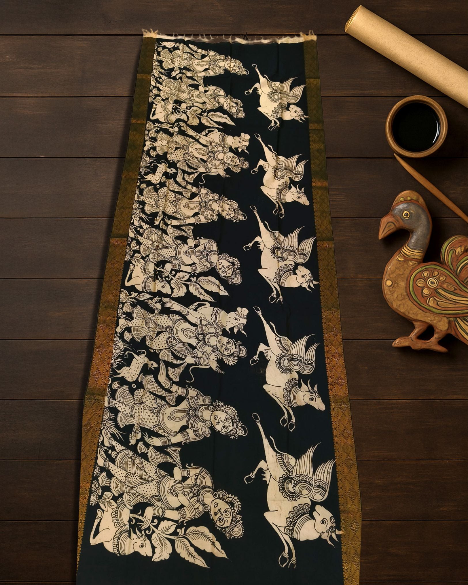 Syaahi Mangalagiri Silk Dupatta Gloomy Black & White