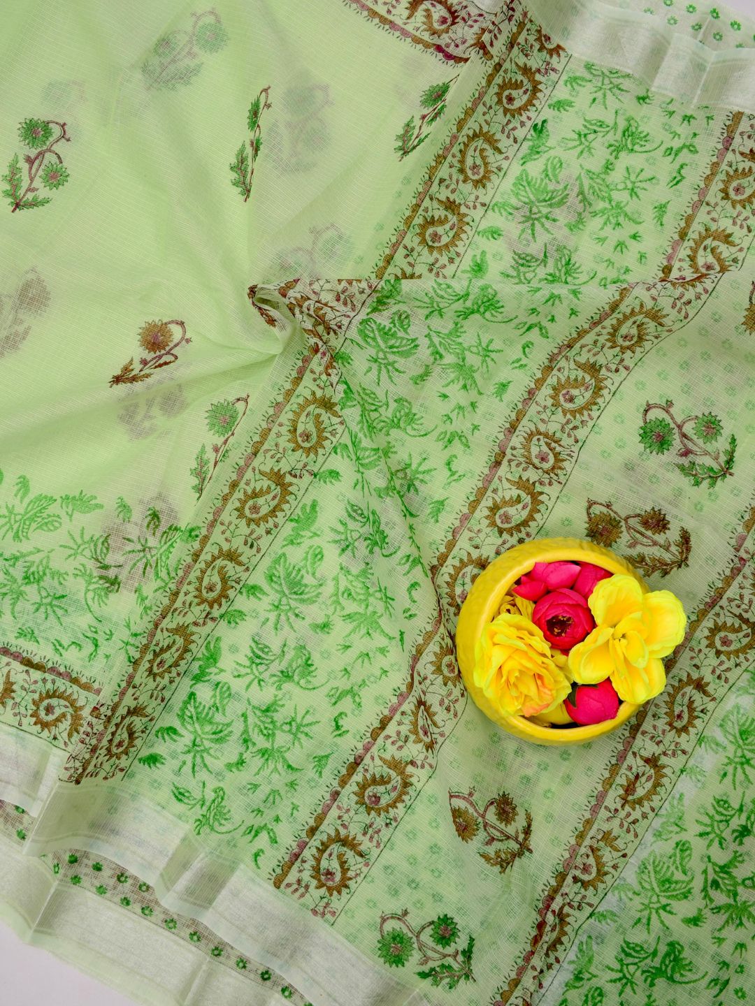 Graceful Kota Doria saree crafted in pure cotton, adorned with intricate hand block prints. Lightweight, airy, and elegant, itโ€™s perfect for festive celebrations or daily wear, showcasing timeless Indian craftsmanship beautifully.