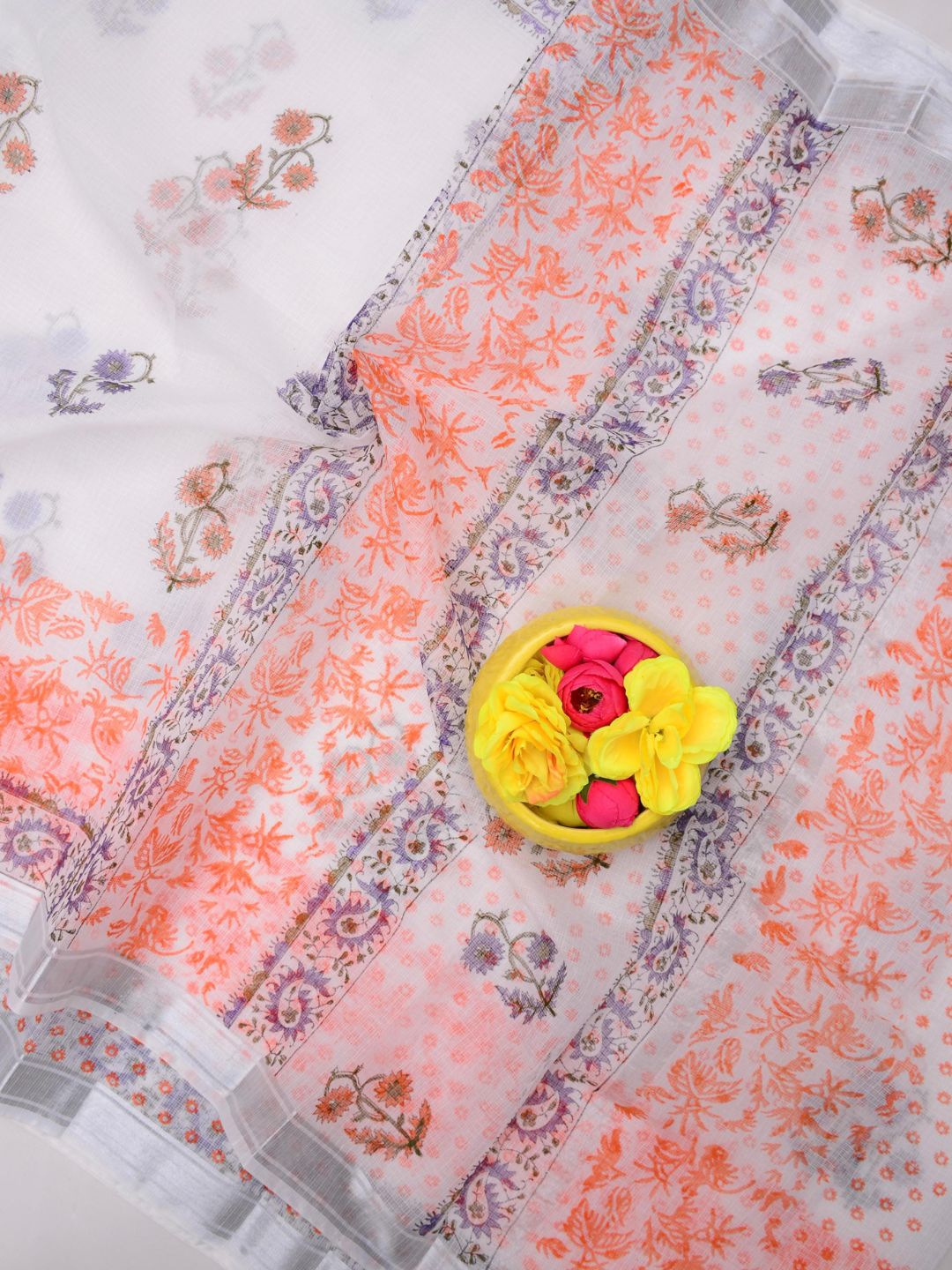 3. How is the Kota Doria Hand Block Print Saree handcrafted?
