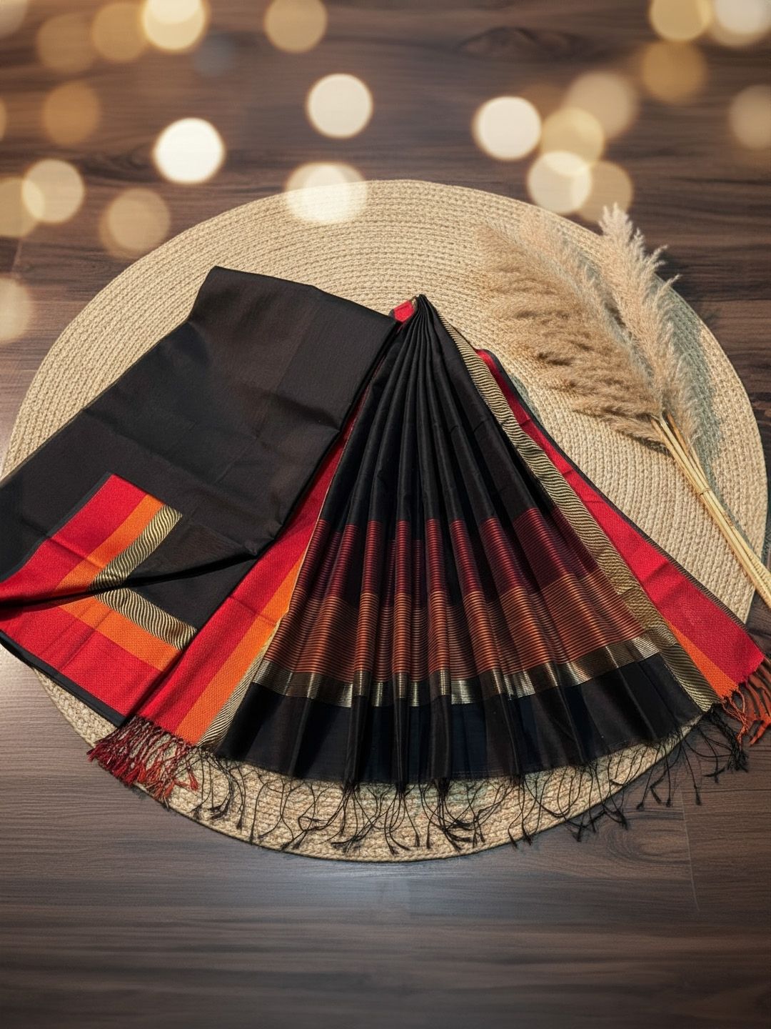 **Maheshwari Silk** is a traditional handwoven fabric from Maheshwar, Madhya Pradesh, known for its luxurious texture and lightweight feel. It blends silk and cotton, offering both shine and comfort. Characterized by intricate zari borders, reversible designs, and geometric or floral motifs, Maheshwari Silk sarees exude timeless grace and royal elegance.